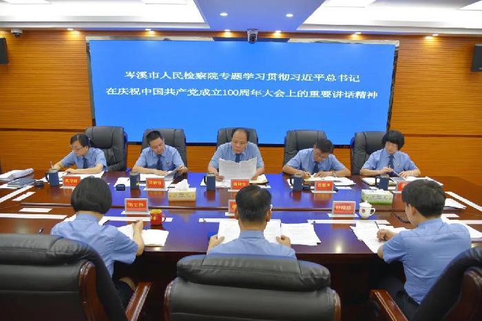 7月6日,岑溪市人民检察院召开党组专题学习会,认真学习贯彻习近平总书记在庆祝中国共产党成立100周年大会上的重要讲话精神。岑溪市人民检察院党组书记、检察长魏钟生主持会议并讲话。
