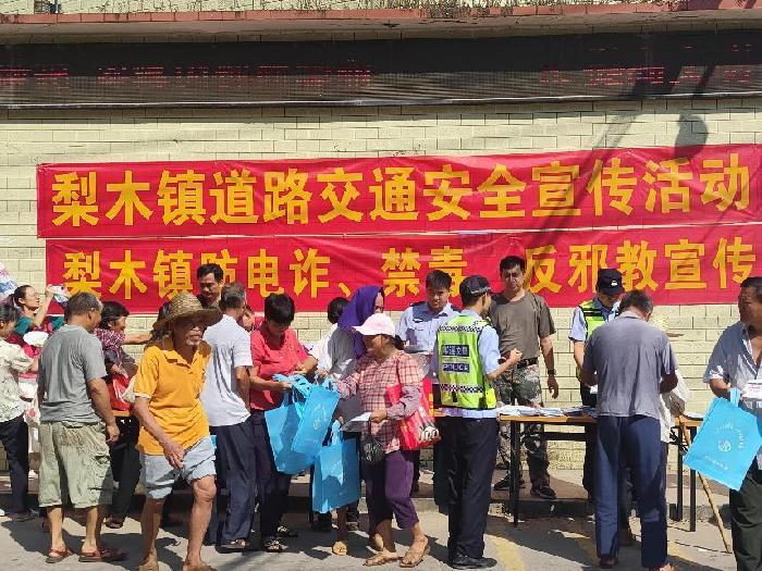 为进一步提高广大群众防范电信诈骗、拒绝邪教能力,增强拒毒、防毒意识,深入推进平安梨木建设营造浓厚宣传氛围。7月28号上午,梨木镇党委组织镇派出所、综治办、禁毒办、团委等利用赶集日开展了反邪教、反电诈、禁毒集中宣传活动。