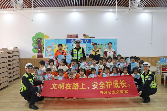 为切实提高儿童的交通安全意识和自我保护能力,预防和减少道路交通事故发生,保障幼儿出行安全,11月5日,岑溪市公安局交通管理大队走进岑溪市的幼儿园,开展以“文明在路上,安全护成长”为主题的交通安全宣传活动。
