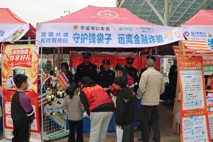“要牢记一定不能将自己的银行卡出租、出售、出借给他人!”反诈民警在活动现场向群众宣传相关法律法规知识。11月23日,岑溪市公安局组织反诈中心、政工、法制、出入境、城南派出所等部门民辅警联合桂林银行岑溪支行工作人员在岑溪市区汇洋广场开展“守护钱袋子 远离金融诈骗”主题宣传活动。